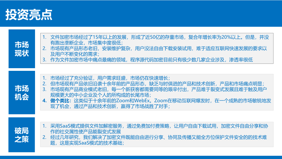 智慧软盾是新一代文件加解密软件产品,以SaaS模式提供文件加解密服务,通过免费加付费策略为用户提供诸如程序源代码、工程图纸、办公文件、以及图像及音视频等文件的加解密服务。智慧软盾全方位保护机密文件的安全,解决员工离职带走机密文件、员工偷走或恶意泄露机密文件、云上存储机密文件被盗、存储机密文件的U盘或电脑丢失等等机密文件安全问题。机密文件可以自由进行分享、协同和传播同时还能确保机密文件的安全。